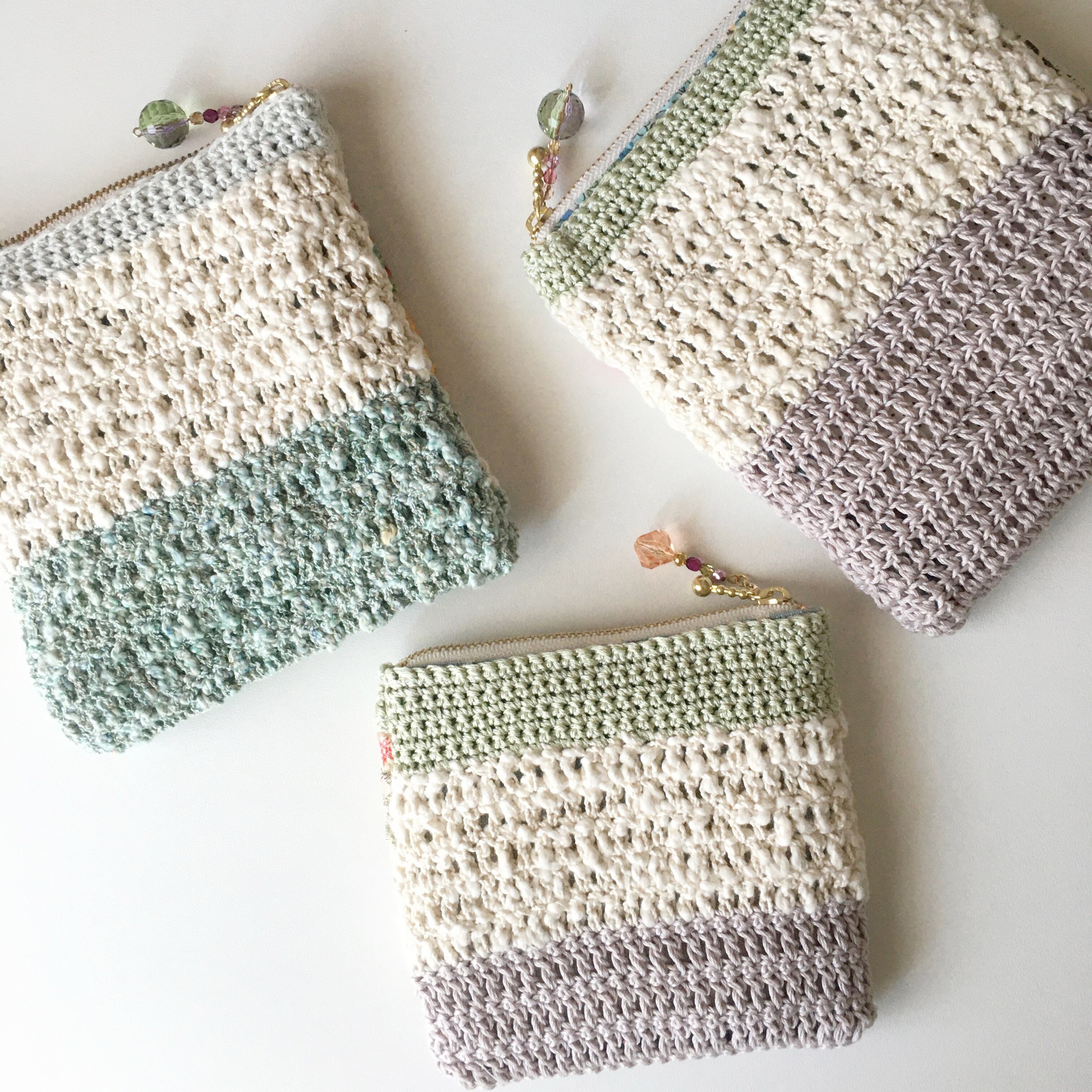 コットンの糸で編んだポーチ。