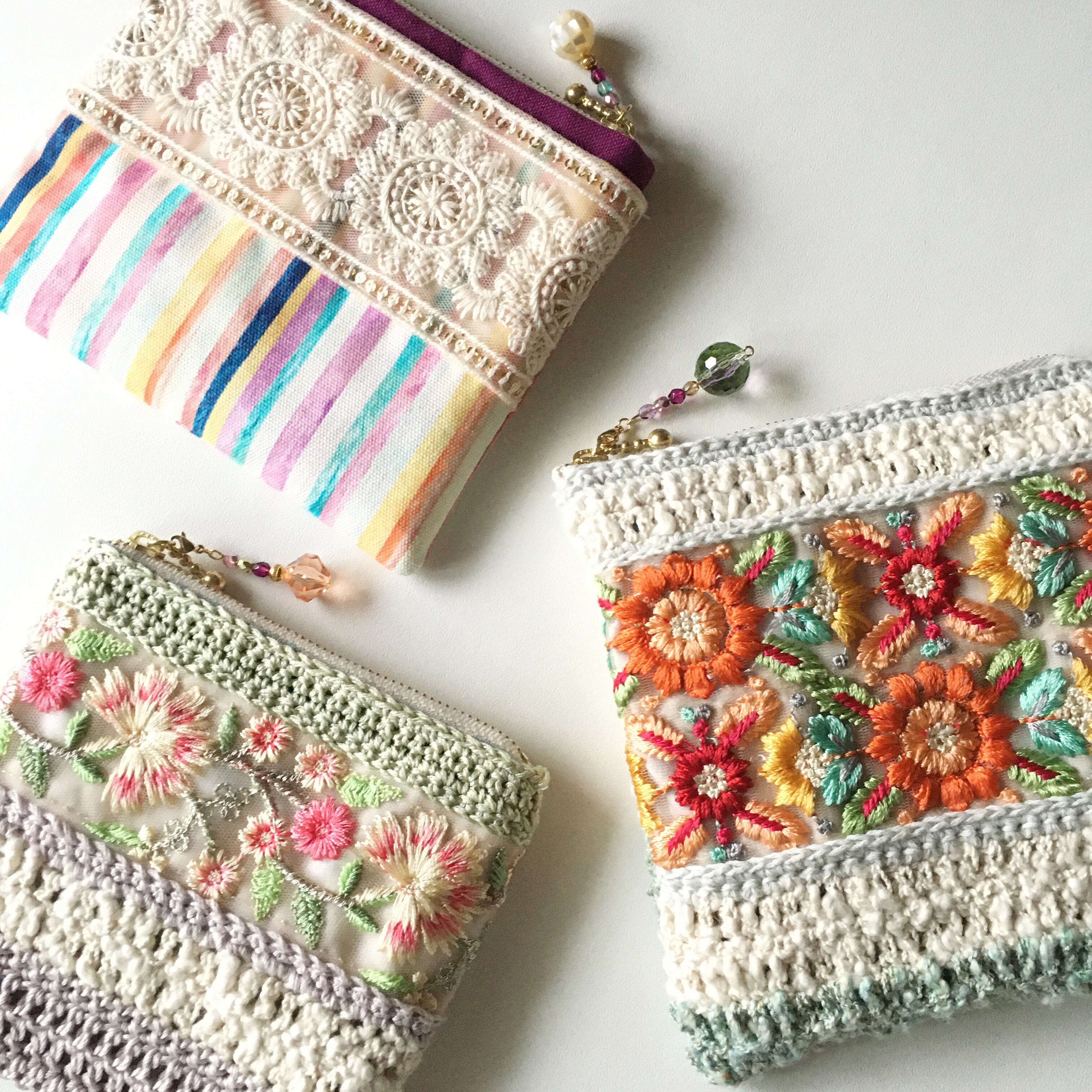 持っているだけで気分が上がる刺繍のポーチです♫