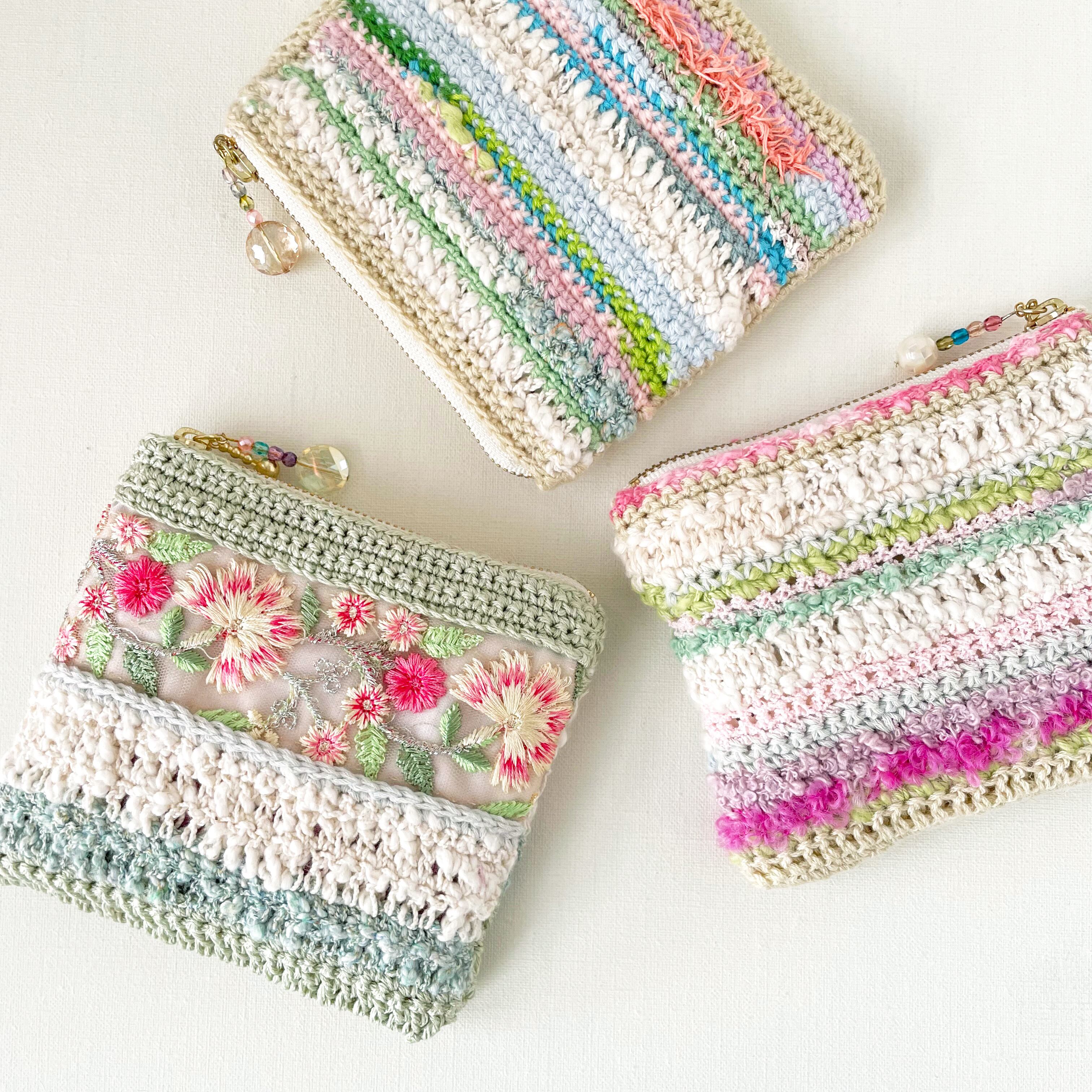 ファスナー部分は、フランスのアンティークビーズなどを使っています。
